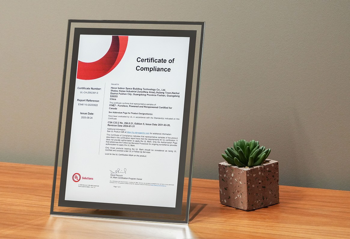 在全球辦公環境持續升級的背景下,產品安全已成為智能辦公設備的基石。HECOR靜音艙通過此次認證,不僅體現了公司在產品研發與質量控制上的實力,也以第三方權威驗證為用戶提供了可靠保障。未來,HECOR將繼續秉持品質初心,致力于為用戶營造更安全、高效、舒適的辦公環境,助力企業在日益嚴格的安全標準中穩健發展。